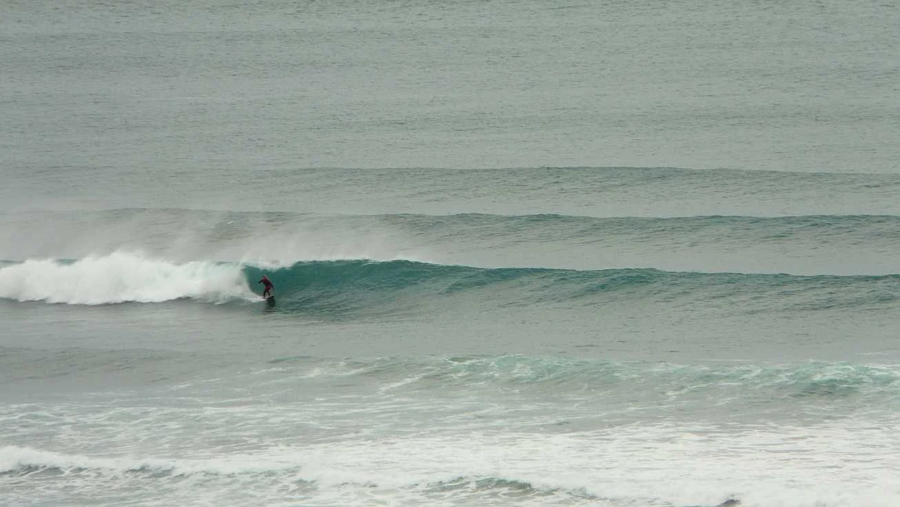 La mañana empezó con viento sur y olas de un metro, lejanas por la acción de las mareas vivas. Rompían redondas y con fuerza, y así continuó durante toda la marea.
