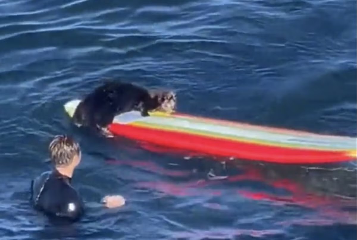 “Una nutria marina agresiva en la zona está mordiendo, arañando y trepando en tablas de surf. Ha habido cuatro incidentes de interacciones de nutrias con surfistas en Santa Cruz. El Departamento de Pesca y Vida Silvestre de California dijo que la nutria marina está en su radar y que un equipo de expertos está trabajando para capturarla y reubicarla”.